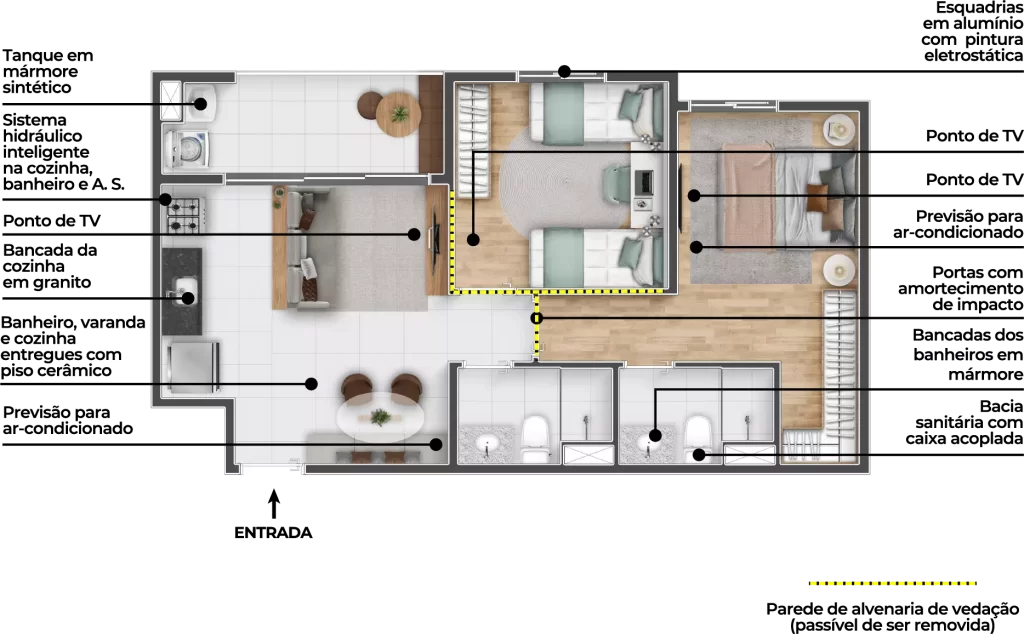 - Opção de 51,76m² entre as mais comercializadas