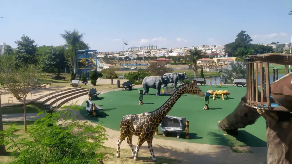 Do outro lado temos o parque temático, um espaço dedicado ao público infantil que abriga brinquedos em forma de animais como elefantes e girafas .