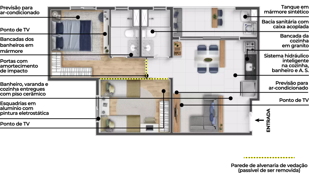 - Opção de 51,76m² entre as mais comercializadas