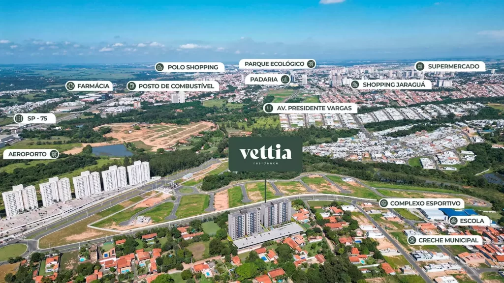 O Vettia Residence está localizado na Estrada Municipal José Costa de Mesquita, 300 – Chácara Alvorada, um bairro com infraestrutura consolidada, próximo a comércios, serviços e apenas 5 minutos da Rodovia SP-75, garantindo fácil acesso a Campinas, São Paulo e toda a região metropolitana.